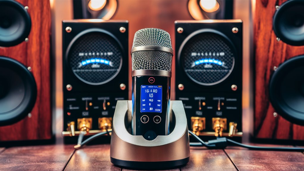 Sound quality is key in pro karaoke setups, with strong speakers linking digital tech to the crowd. Top systems offer 20Hz-20kHz sound levels, needed for clear voices and full music sound. Pro setups need at least 300-watt RMS power to keep sound clear when it gets loud.